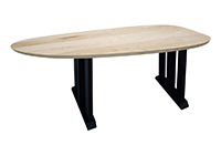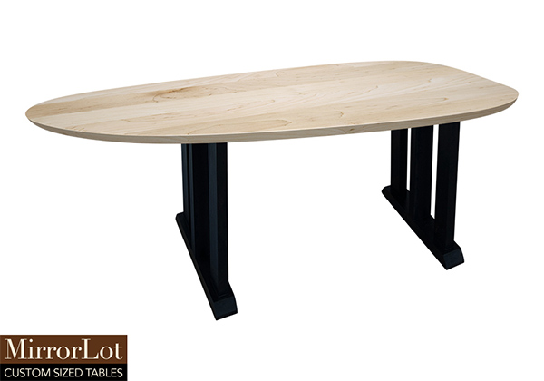 The Winslow table's timeless style could easily fit in any dining room or office setting. The beveled knife edge unique round shape table top is made from solid maple wood and the table legs are