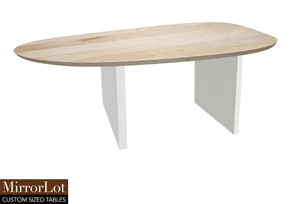 The Winslow table's timeless style could easily fit in any dining room or office setting. The beveled knife edge unique round shape table top is made from solid maple wood and the table legs are