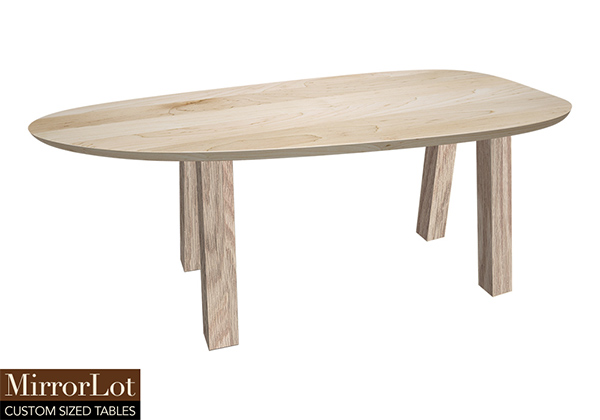 The Winslow table's timeless style could easily fit in any dining room or office setting. The beveled knife edge unique round shape table top is made from solid maple wood and the table legs are