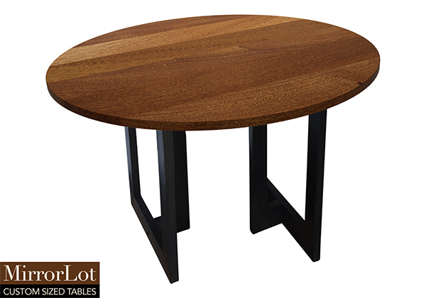 The Reno table's timeless style could easily fit in any dining room or office setting. The round shape table top is made from solid african mahogany wood and the table legs are