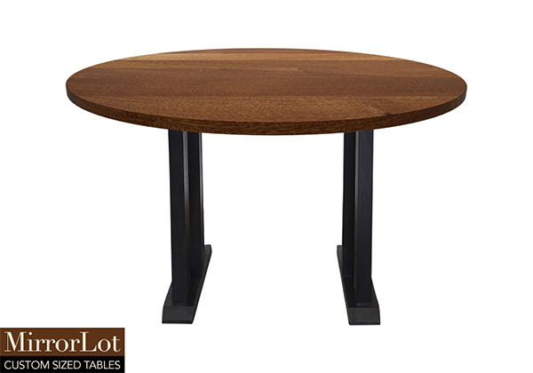 The Reno table's timeless style could easily fit in any dining room or office setting. The round shape table top is made from solid african mahogany wood and the table legs are