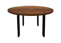 The Reno table's timeless style could easily fit in any dining room or office setting. The round shape table top is made from solid african mahogany wood and the table legs are