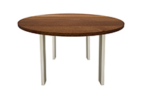 The Reno table's timeless style could easily fit in any dining room or office setting. The round shape table top is made from solid african mahogany wood and the table legs are