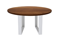 The Reno table's timeless style could easily fit in any dining room or office setting. The round shape table top is made from solid african mahogany wood and the table legs are