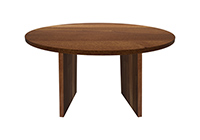 The Reno table's timeless style could easily fit in any dining room or office setting. The round shape table top is made from solid african mahogany wood and the table legs are