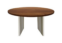 The Reno table's timeless style could easily fit in any dining room or office setting. The round shape table top is made from solid african mahogany wood and the table legs are