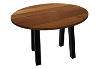 The Reno table's timeless style could easily fit in any dining room or office setting. The round shape table top is made from solid african mahogany wood and the table legs are