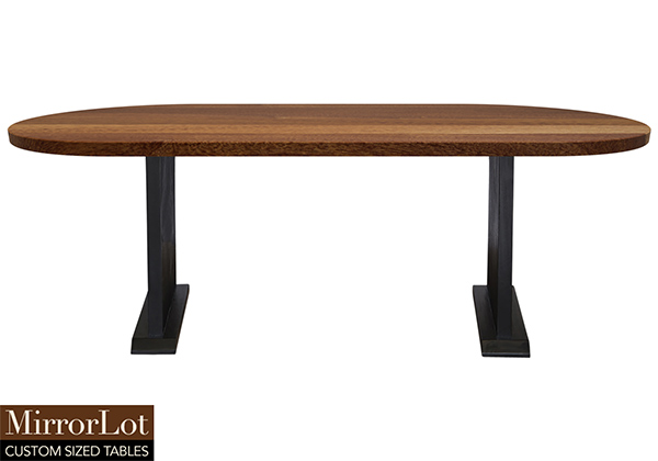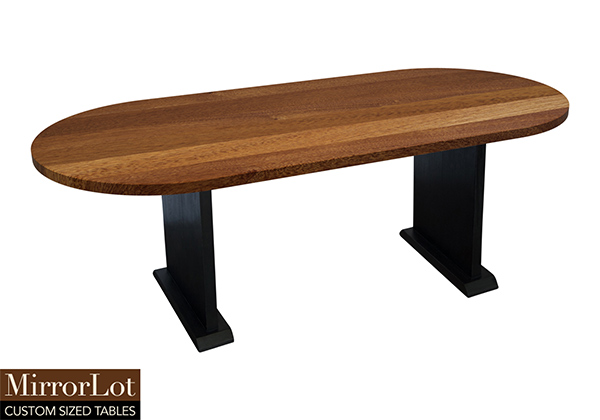 The Wells table's timeless style could easily fit in any dining room or office setting. The oval shape table top is made from solid african mahogany wood and the table legs are