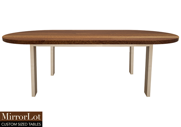 The Wells table's timeless style could easily fit in any dining room or office setting. The oval shape table top is made from solid african mahogany wood and the table legs are