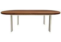The Wells table's timeless style could easily fit in any dining room or office setting. The oval shape table top is made from solid african mahogany wood and the table legs are