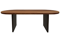 The Wells table's timeless style could easily fit in any dining room or office setting. The oval shape table top is made from solid african mahogany wood and the table legs are