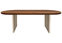 The Wells table's timeless style could easily fit in any dining room or office setting. The oval shape table top is made from solid african mahogany wood and the table legs are