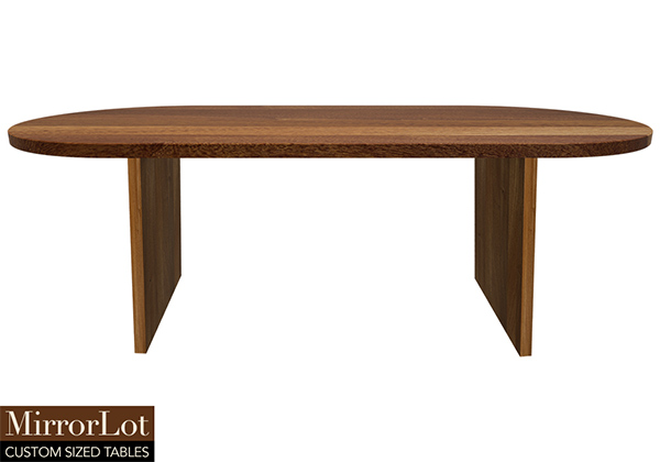 The Wells table's timeless style could easily fit in any dining room or office setting. The oval shape table top is made from solid african mahogany wood and the table legs are