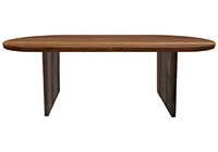 The Wells table's timeless style could easily fit in any dining room or office setting. The oval shape table top is made from solid african mahogany wood and the table legs are