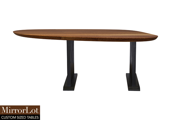 The Fallon table's timeless style could easily fit in any dining room or office setting. The beveled knife edge unique round shape table top is made from solid african mahogany wood and the table legs are