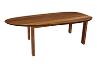 The Fallon table's timeless style could easily fit in any dining room or office setting. The beveled knife edge unique round shape table top is made from solid african mahogany wood and the table legs are