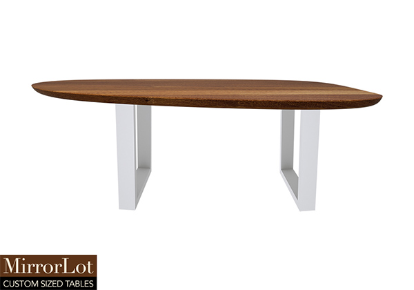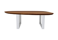 The Fallon table's timeless style could easily fit in any dining room or office setting. The beveled knife edge unique round shape table top is made from solid african mahogany wood and the table legs are