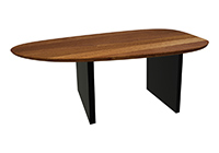 The Fallon table's timeless style could easily fit in any dining room or office setting. The beveled knife edge unique round shape table top is made from solid african mahogany wood and the table legs are