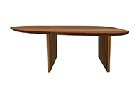 The Fallon table's timeless style could easily fit in any dining room or office setting. The beveled knife edge unique round shape table top is made from solid african mahogany wood and the table legs are