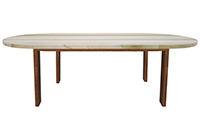 The Oregon table's timeless style could easily fit in any dining room or office setting. The oval shape table top is made from solid poplar wood and the table legs are