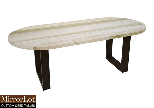 The Oregon table's timeless style could easily fit in any dining room or office setting. The oval shape table top is made from solid poplar wood and the table legs are