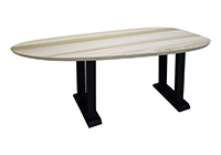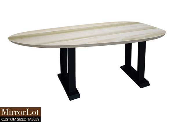 The Lima table's timeless style could easily fit in any dining room or office setting. The beveled knife edge unique round shape table top is made from solid poplar wood and the table legs are