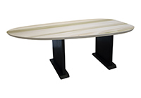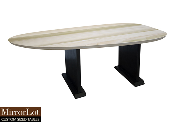 The Lima table's timeless style could easily fit in any dining room or office setting. The beveled knife edge unique round shape table top is made from solid poplar wood and the table legs are