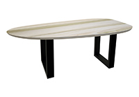 The Lima table's timeless style could easily fit in any dining room or office setting. The beveled knife edge unique round shape table top is made from solid poplar wood and the table legs are