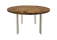 The Milan table's timeless style could easily fit in any dining room or office setting. The round shape table top is made from solid rustic alder wood and the table legs are
