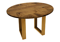 The Milan table's timeless style could easily fit in any dining room or office setting. The round shape table top is made from solid rustic alder wood and the table legs are