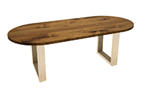 The Siena table's timeless style could easily fit in any dining room or office setting. The oval shape table top is made from solid rustic alder wood and the table legs are