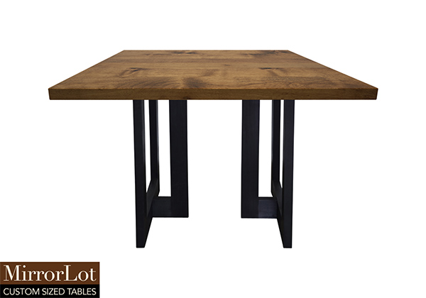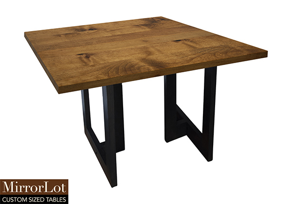 The Modena table's timeless style could easily fit in any dining room or office setting. The square shape table top is made from solid rustic alder wood and the table legs are