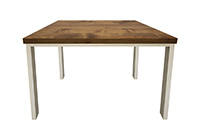 The Modena table's timeless style could easily fit in any dining room or office setting. The square shape table top is made from solid rustic alder wood and the table legs are