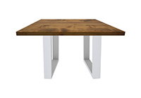 The Modena table's timeless style could easily fit in any dining room or office setting. The square shape table top is made from solid rustic alder wood and the table legs are