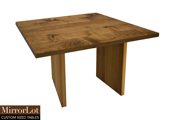 The Modena table's timeless style could easily fit in any dining room or office setting. The square shape table top is made from solid rustic alder wood and the table legs are