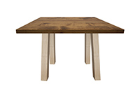 The Modena table's timeless style could easily fit in any dining room or office setting. The square shape table top is made from solid rustic alder wood and the table legs are