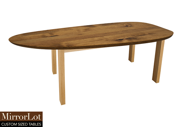 The Venice table's timeless style could easily fit in any dining room or office setting. The beveled knife edge unique round shape table top is made from solid rustic alder wood and the table legs are