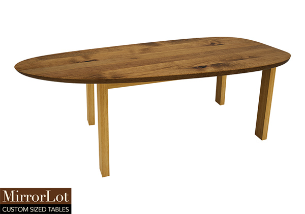 The Venice table's timeless style could easily fit in any dining room or office setting. The beveled knife edge unique round shape table top is made from solid rustic alder wood and the table legs are