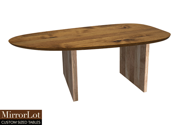 The Venice table's timeless style could easily fit in any dining room or office setting. The beveled knife edge unique round shape table top is made from solid rustic alder wood and the table legs are
