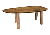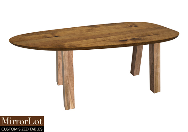 The Venice table's timeless style could easily fit in any dining room or office setting. The beveled knife edge unique round shape table top is made from solid rustic alder wood and the table legs are