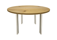 The Kent table's timeless style could easily fit in any dining room or office setting. The round shape table top is made from solid rustic alder wood and the table legs are