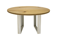The Kent table's timeless style could easily fit in any dining room or office setting. The round shape table top is made from solid rustic alder wood and the table legs are