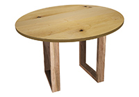 The Kent table's timeless style could easily fit in any dining room or office setting. The round shape table top is made from solid rustic alder wood and the table legs are