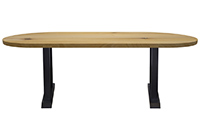 The Shoreline table's timeless style could easily fit in any dining room or office setting. The oval shape table top is made from solid rustic alder wood and the table legs are