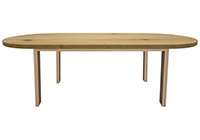 The Shoreline table's timeless style could easily fit in any dining room or office setting. The oval shape table top is made from solid rustic alder wood and the table legs are