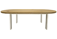 The Shoreline table's timeless style could easily fit in any dining room or office setting. The oval shape table top is made from solid rustic alder wood and the table legs are