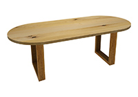 The Shoreline table's timeless style could easily fit in any dining room or office setting. The oval shape table top is made from solid rustic alder wood and the table legs are