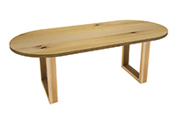 The Shoreline table's timeless style could easily fit in any dining room or office setting. The oval shape table top is made from solid rustic alder wood and the table legs are