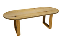 The Shoreline table's timeless style could easily fit in any dining room or office setting. The oval shape table top is made from solid rustic alder wood and the table legs are
