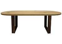 The Shoreline table's timeless style could easily fit in any dining room or office setting. The oval shape table top is made from solid rustic alder wood and the table legs are